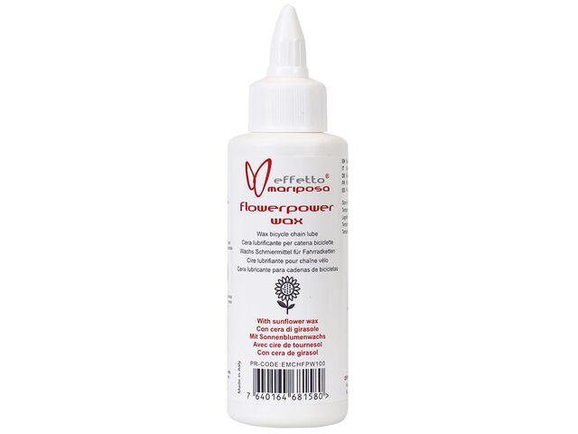 Flowerpower is a performance wax-based lubricant using natural ingredients including a high sunflower seed wax content. It is an efficient way to lubricate bicycle chains yet harmless to the environment with its formula avoiding any fluorinated compounds (PFAS), graphene or sulphides. After treatment with Flowerpower lube, the chain will run quietly and more efficiently, giving more power to the rider. It will not attract dirt like oil-based lubes so the life of the chain is extended. Flowerpower is a wax emulsion based in water, not alcohol. It has a high wax-to-water ratio exceeding 50%. Applied to a clean chain Flowerpower penetrates and coats the chain with a thick layer of wax which anchors to the metal as the water base evaporates. This leaves a long-lasting wax coating that is resistant to pedalling stresses and water from rain or the trail/road. It is recommended that about 4ml of Flowerpower lube is used on a clean chain. This will last approximately 300km in dry riding road conditions or 7,500km per 100ml bottle. Off-road or use in heavy rains are likely to require more frequent applications. 100ml bottle. Long lasting. Low friction formula. Store and apply temperature range 5 - 35 deg. C (41 - 95 deg. F). Made in Italy. |